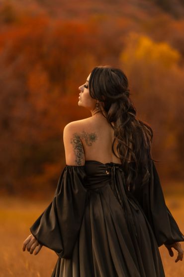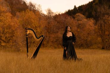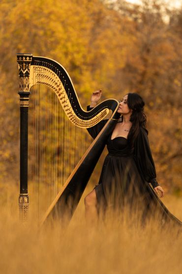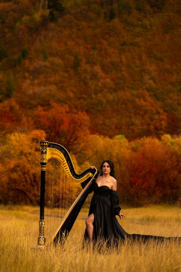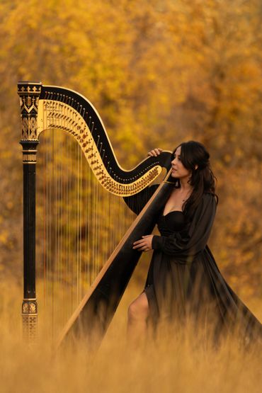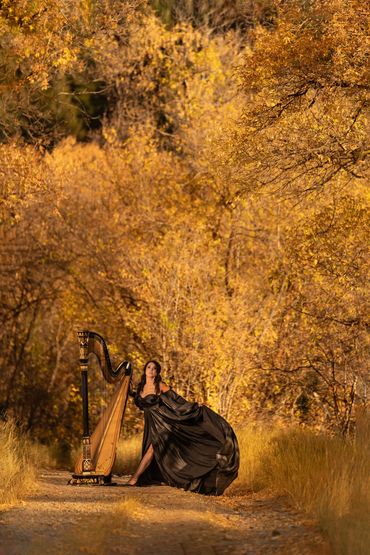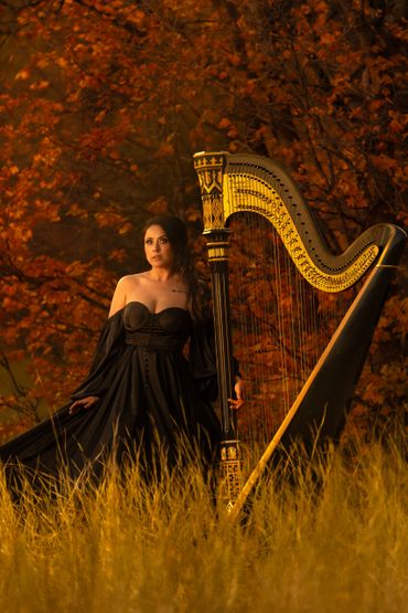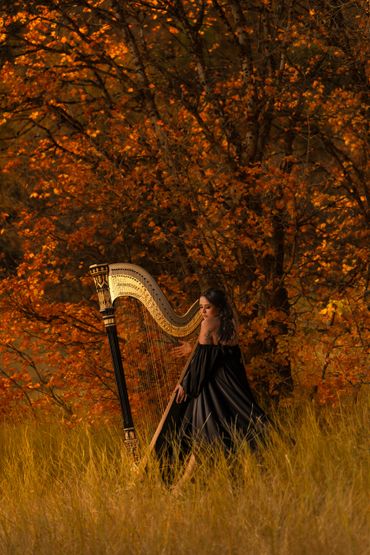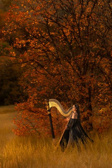 " Venus in the Meadow" is a breathtaking ode to music, nature, and timeless beauty. Set against the golden hues of an autumn meadow, Alexis, The Barefoot Harpist, becomes a vision of ethereal grace—her harp an extension of her soul, her bare feet grounding her in the earth’s quiet embrace. The wind carries both melody and movement, weaving together a story of harmony between artist and landscape. Bathed in warm light, this series captures the essence of a muse in her element—wild, free, and effortlessly divine.